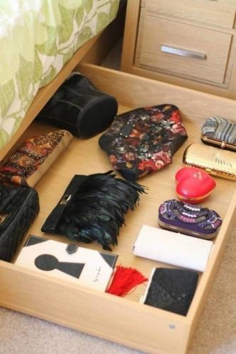 Выдвижной ящик может быть не только у кровати, но и в шкафу или комоде. Укладывая свои сумки в такие пространства, вы должны предвидеть, не повредит ли им такое хранение. Я отдала сумкам один ящик в шкафу, аккуратно их уложила, и пока ни одна из них не жаловалась.