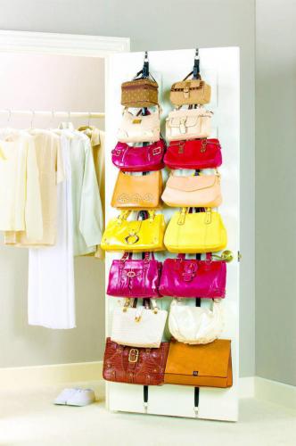 Вместо того, чтобы хранить сумки в коробках или складировать их на полках, вешайте их на крючки. Если коллекция сумочек достаточно внушительная, лучше обзавестись сразу несколькими крючками, прикрепить которые можно к стенке, торцу или дверце шкафа.