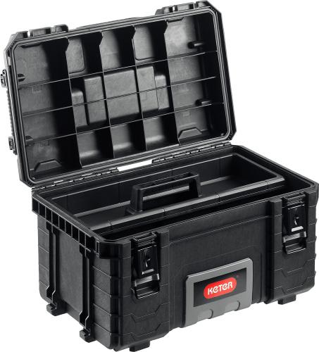 Кейс с высокими показателями вместимости, выполнен из пластмассы, оснащен колесами грузового типа. Внушительное число отделений с большой емкостью, присутствуют отсеки под расходные материалы. Также, подходит для крупногабаритной оснастки, вроде болгарок или дрелей. Присутствует модуль в форме карусели для размещения мелких инструментов, нижний отдел предоставляет пространство, чья емкость превышает 25 л. При перевозках проблем не возникает, но некоторые пользователи отмечают странное поведение рукояти при высокой загрузке чемодана. Размеры кейса равны 564 на 372 на 552 мм, возможна разборка на составляющие.