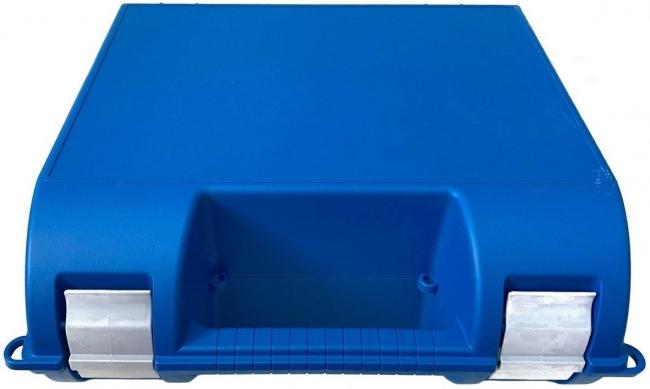 Внушительная вместительность, выполнен из прочной пластмассы, перевозится при помощи колес, типа грузовые. Отделения внутри кейса емкие, подходят как для мелкогабаритных приборов и расходников, так и для крупного инструмента. Под мелочь в этой модели предусмотрен дополнительный отсек с крышкой и модуль в форме карусели. Нижний отсек предоставляет емкость более 25л, внутри расположен съемный модуль. Присутствует возможность разбора изделия на 2 части, в перевозке проблем не возникает. Ручка складного типа, размеры равны 473 на 302 на 627 мм.