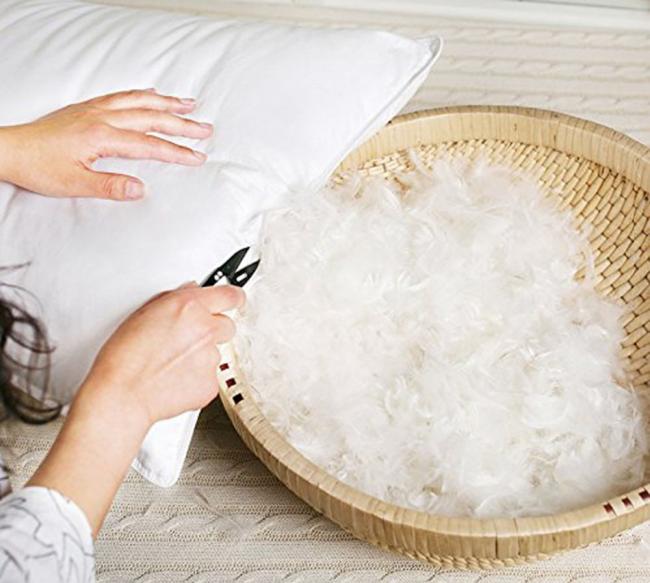 - При неправильно подобранном чистящем средстве можно потерять половину от массы наполнителя и вместо 3 подушек получить всего одну.