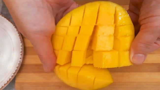 Осторожно удалите мякоть манго по инструкции, указанной выше.