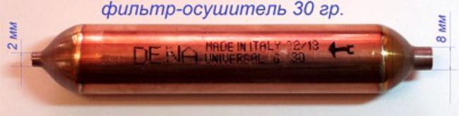 При эксплуатации холодильника происходит загрязнение хладагента. Предназначение фильтра-осушителя в очистке хладагента. Он представляет собой медную трубку, которая устанавливается в непосредственной близости от конденсатора. Это позволяет избежать засорения капилляра. Наличие мусора в хладагенте может перекрыть путь к его прохождению. В результате хладагент замерзнет внутри капилляра.