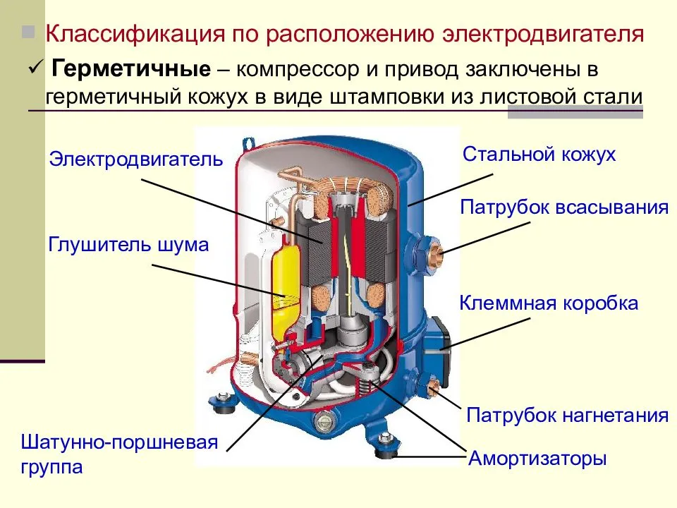 Компрессионный холодильник по своей конструкции — закрытого типа с одним мотор — компрессором, с обеспечением полной герметизации холодильного агрегата.