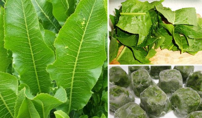 Срок хранения листьев хрена в морозильной камере гораздо продолжительней. Чтобы их заморозить, используют тот же способ подготовки, как при хранении в холодильнике.