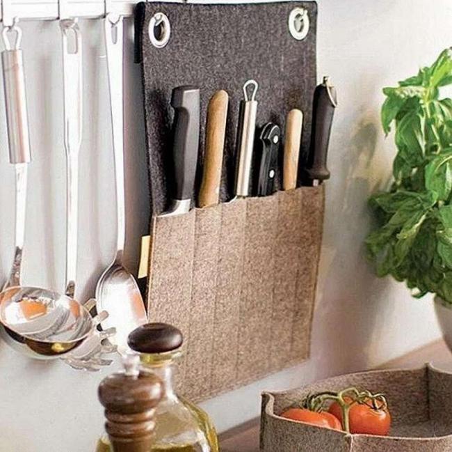 Органайзер для кухни может быть разным: сшитым из ткани, выполненным из пластика, картона, дерева. Главной задачей в этом смысле является то, чтобы сделать хранение всего, что нужно иметь на кухне под рукой, более удобным и красиво смотреться в окружении других вещей на кухне. То есть органайзер должен выписываться в образ кухни, добавлять ей не только удобства, но и изюминки.