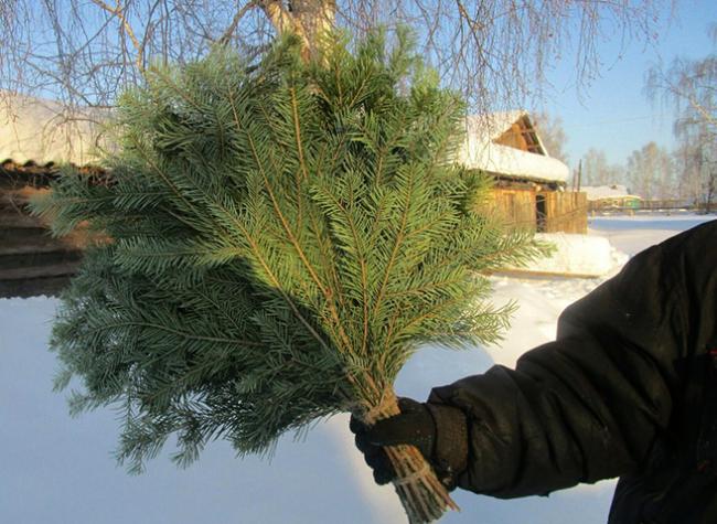 Чтобы зимой пихтовый веник не портился слишком долго, его можно оставлять в сугробе. Снег должен быть свежим, без ледяной корочки. Лёд может повредить иголки и дерево.