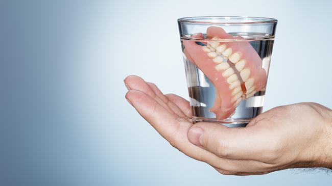 Вымачивайте зубные протезы в контейнеры со специальным чистящим средством