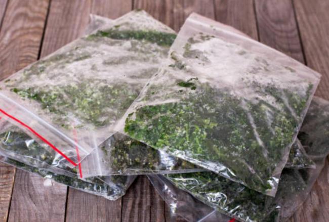 - Веточки целиком уложить в пакеты, скрутить в трубочки вдоль стебля и положить в морозильную камеру.