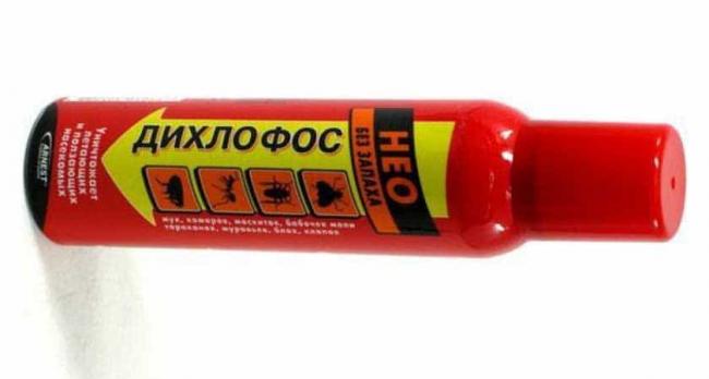Дихлофос – химический препарат в виде аэрозоля, который часто применяется для уничтожения различных вредителей (комары, мухи, прусаки).