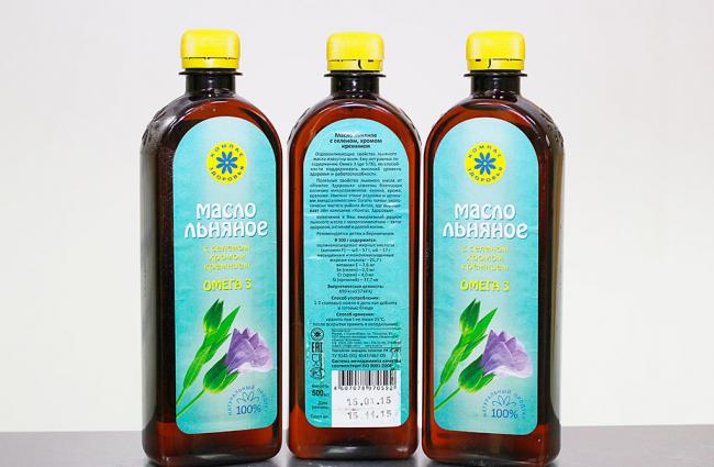 Льняное масло обладает незаменимыми и полиненасыщенными фенолами Омега 3 и Омега 6. Человеческому организму необходимы кислоты. Продукт добавляют при приготовлении пищи и даже пьют по утрам.