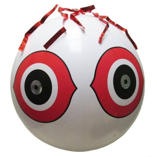 Такой отпугиватель воздействует на зрительные органы птиц. Он продается в магазинах для дачников. Представляет собой яркий виниловый надувной шар, на который нанесен рисунок, имитирующий глаза хищной птицы. Выполнен в красных, черных и желтых цветах, вызывающих у пернатых чувство страха.