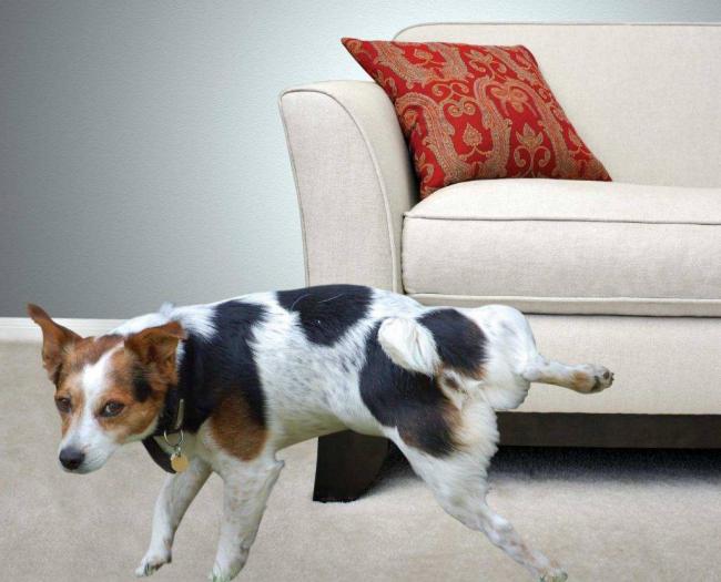 Часто неприятный запах на диване появляется из-за животных.
