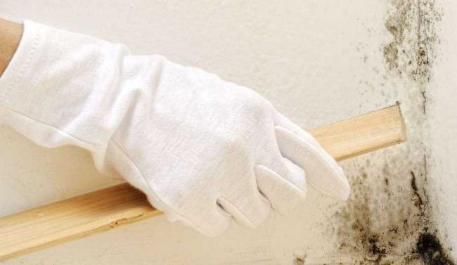 - 2. смочить губку или тряпку в растворе и смывать им пятна плесени,