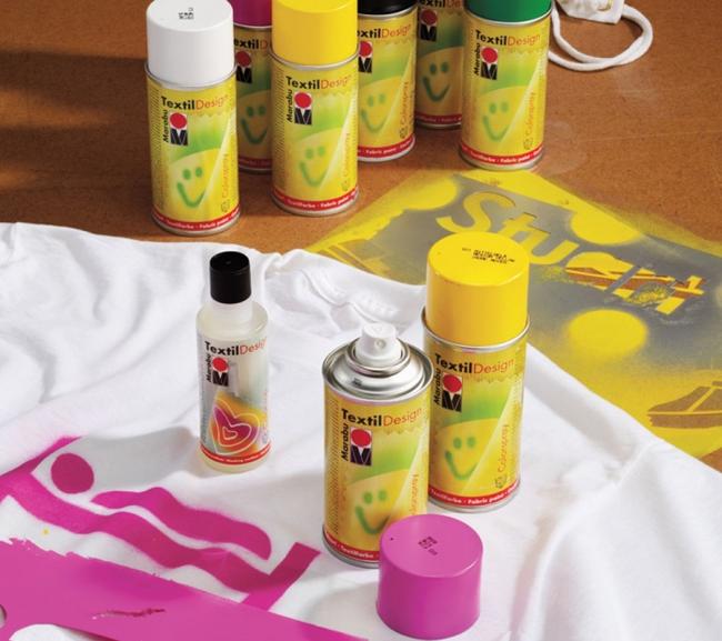 Эта модель также относится к категории аэрозольных. Продукт на водной основе отпускается по 150 мл. Перед тем, как выбрать этот продукт, следует отметить, что после нанесения орнамента необходимо подвергнуть материю деликатной стирке при 30°С. В последующей фиксации вещество не нуждается. На места, которые после будут соприкасаться с кожей, наносить состав не рекомендуется. После окисления возможно начало крошения. Если рисунок делается от руки, то следует выдерживать расстояние между баллончиком и рабочей поверхностью в 5 см, если используется трафарет или делается произвольное нанесение без вспомогательных аксессуаров — 25 см. Перед началом манипуляций емкость хорошенько встряхивается на протяжении нескольких минут. Баллончик держится строго вертикально. Перед следующим использованием сопло прочищается.