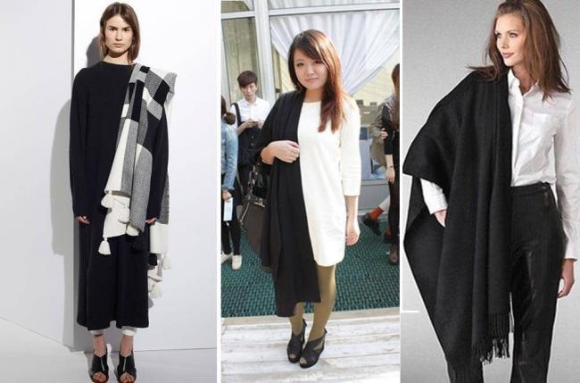 Черные лучше не использовать обладательницам светлых волос и кожи, в связи с тем, что накидка еще больше подчеркнет бледную внешность его обладательницы. Лучше всего шарф черного цвета подойдет брюнеткам со смуглой кожей.