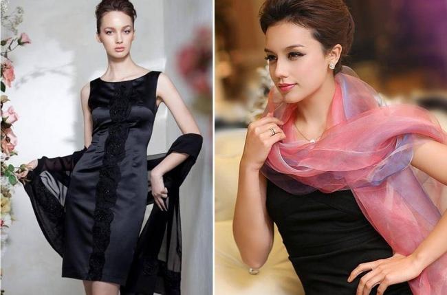 Если палантин изготовлен из тонкого материала, например, шелка или шифона, то он отлично подойдет к легким платьям, сарафанам, блузкам и пр.