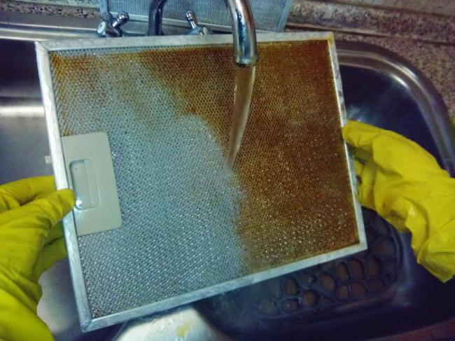 Важная составная часть вытяжной системы – это решётка. Она имеет сетчатое строение, что позволяет ей наиболее эффективно очищать воздух от частиц масла и защищать внутренние элементы и механизм устройства от жировых корок. Решётка принимает всю грязь на себя, становясь желтой, липкой и грязной. Чтобы отмыть решетку от вытяжки, придётся сильно потрудиться. Приложив некоторые усилия, с загрязнениями на фильтре можно справиться с помощью химических составов или жёсткой щётки. Есть и народный метод – использовать хозяйственное мыло. Оно неплохо разъедает жир и удаляет копоть Решётку достаточно замочить на некоторое время в мыльном растворе, а после пройтись губкой.