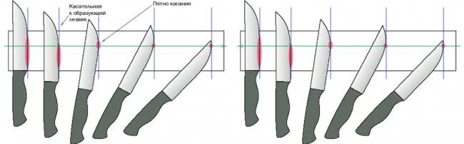 - Движение лезвия по камню должны делаться от винта к кончику.