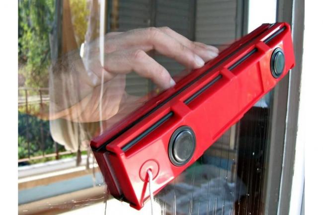 Не лучший по качеству уборки инвентарь, но незаменимый в мытье окон на верхних этажах. Им удобно чистить стекла снаружи, не подвергая себя опасности. Щетка держится на стекле за счет вшитых магнитов. Они находятся под губками с резиновыми прослойками. Губка очищает поверхность, а прорезиненные вставки собирают остатки моющего средства и полируют стекло.