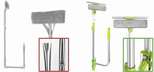Существует множество некачественных подделок оригинальной телескопической швабры для окон. Чтобы удешевить изделие, производители используют некачественный материал (сплав) для изготовления конструкции. Ручки и крепления у таких видов швабр являются хрупкими и легко подвержены повреждениям.