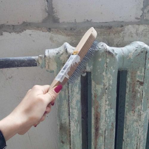 Мне не хотелось тратиться на целый строительный фен ради одной батареи. Подсмотрела в интернете, что можно взять щетку по металлу. Терла, терла – и никакого результата.