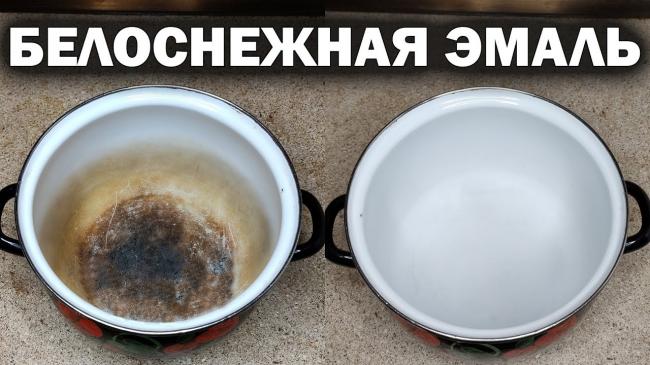 Как ОЧИСТИТЬ ЭМАЛИРОВАННУЮ КАСТРЮЛЮ ВНУТРИ от желтизны, темного налета, накипи, известкового налета