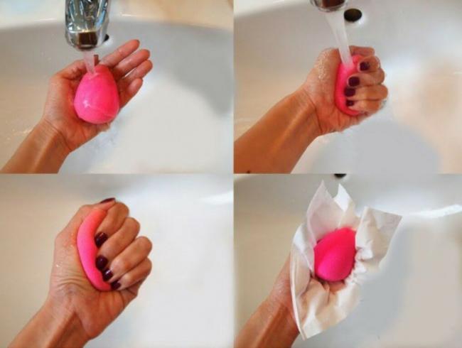 - промойте beautyblender под проточной теплой водой.