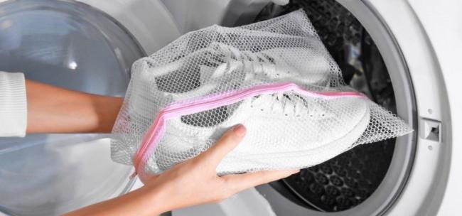 - обувь желательно стирать в специальных мешочках, если таких не имеется, не беда, можно воспользоваться обычной старой наволочкой;