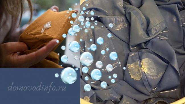 С синтетических волокон прилипший комок смывают теплой мыльной пеной