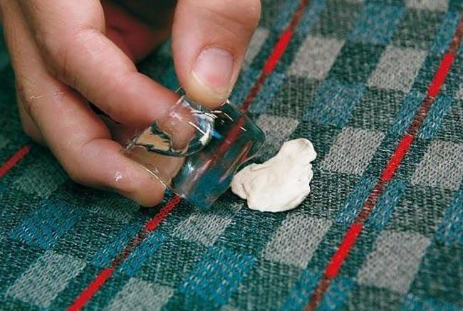 Вещество на кусочке ваты наносят на повреждённую вещь, и оттирают жвачку. Одежду следует постирать после обработки ацетоном. Это хороший способ как вывести пятно от жвачки с одежды.