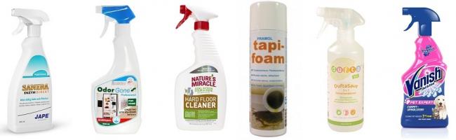 Если домашние доступные средства бесполезны, для выведения желтизны и запаха мочи берут готовые составы, которые часто содержат агрессивные компоненты, но бесследно очищают мягкие поверхности, нейтрализуют зловоние.