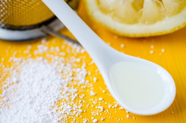 - 1/2 столовой ложки лимонной кислоты способна быстро удалить налёт жёлтого цвета;