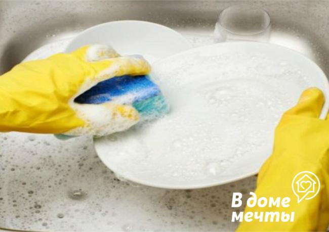 - можно добавить «Белизну», которой отмываете сантехнику, она неплохо работает и с кухонными принадлежностями, правда, требует тщательного ополаскивания посуды.