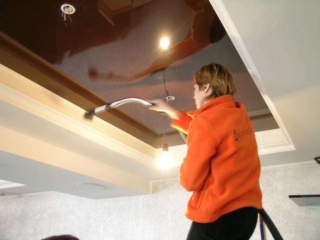 Отдельное внимание уделяется глянцевым потолкам, т.к. некорректная уборка может нарушить эстетику