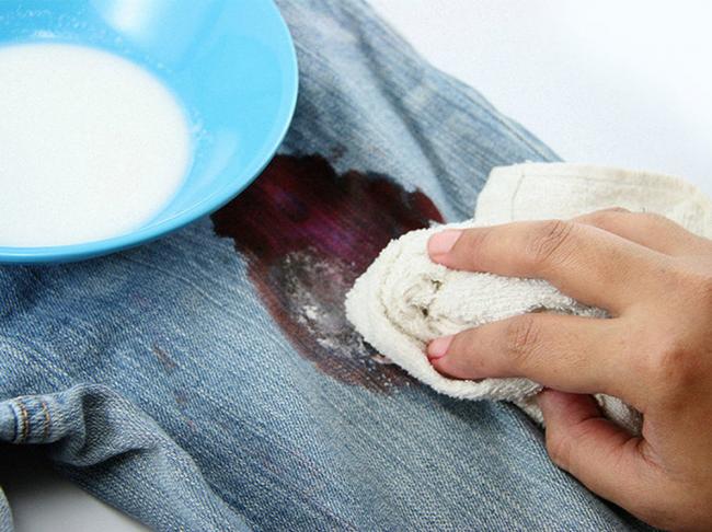 | Джинсы | Джинсовую ткань стоит перед основной чисткой обработать солью. Насыпьте пару щепоток поваренной соли на кровавое пятно и аккуратно потрите щёткой, после чего воспользуйтесь профессиональным или подручным пятновыводителем. |