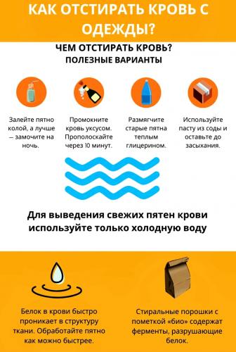 2. Холодная вода. При первичной обработке кровяных пятен используйте холодную воду. Горячая вода может привести к застыванию белка, что сделает процесс удаления пятен более сложным.