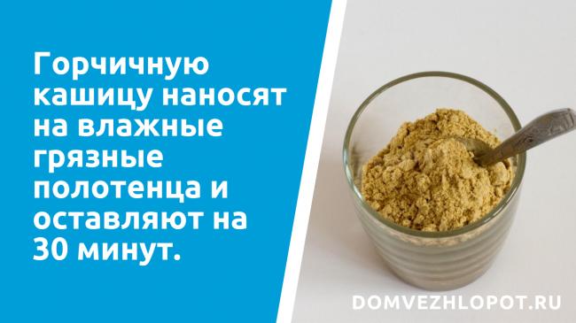 - Горчичную кашицу наносят на влажные грязные полотенца и оставляют на 30 минут.