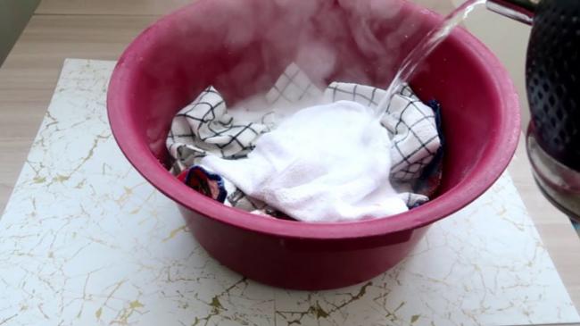 - Затем замочить полотенца в полученном растворе на протяжении 20–30 минут, после чего вынуть и хорошо ополоснуть.