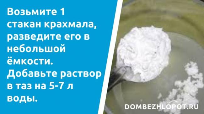 Для последнего метода потребуется крахмал. Сначала простирайте занавески порошком. Налейте в таз 5-6 литров воды и добавьте 2 ст. л. крахмала. Замочите тюль на 40 минут. Занавески станут заметно светлее и жестче, поэтому в следующий раз выводить грязь будет в разы проще.