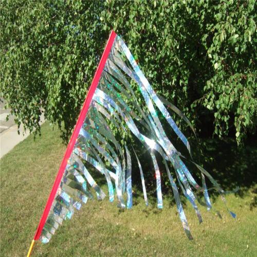 - Двигающиеся предметы. Начните с развешивания лёгких шуршащих предметов. Можно использовать полоски нарезанной фольги, плёнку от аудио-, видеокассет. Поместите по всей площади, под потолком. Шуршание на ветру и блеск на солнце создают пернатым неприятные ощущения и негативно сказываются на их поведении. Это самая простая и действенная защита от голубей.