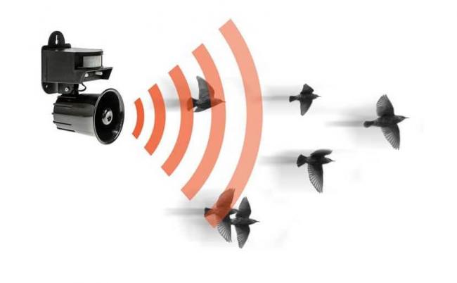 - Биоакустические. Приборы могут работать в ручном и автоматическом режиме, что очень удобно для тех, кто целый день проводит на работе. Отпугиватели моделируют звуковые колебания, схожие со звуками хищных птиц: орлов, соколов, ястребов. Несколько другая разновидность подобного прибора называется «громпушкой», она имитирует звук пистолетного выстрела. Он недостаточно громкий, чтобы испугать соседей, но птиц спугнет точно. Подобные устройства, оснащенные солнечными батареями, можно встретить даже в портах и на причалах, для отпугивания чаек.