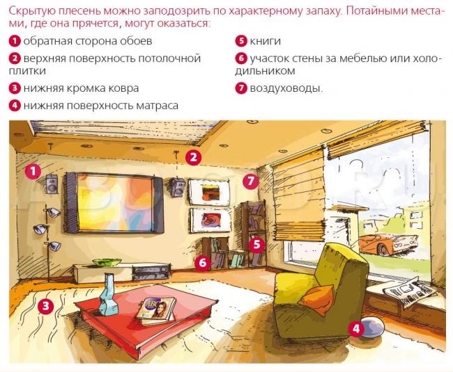 плесени (особенно в квартирах на первом этаже) – частое явление и в старых