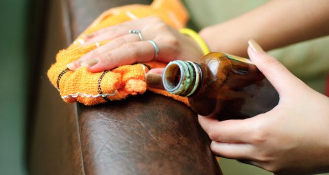 Если возник вопрос, как почистить светлый кожаный диван, можно использовать слабый раствор спирта. С его помощью удаляется любое загрязнение. Затем обработанный участок протирают ватным диском, который предварительно смачивают в глицерине. За счет этого материал не будет пересыхать.