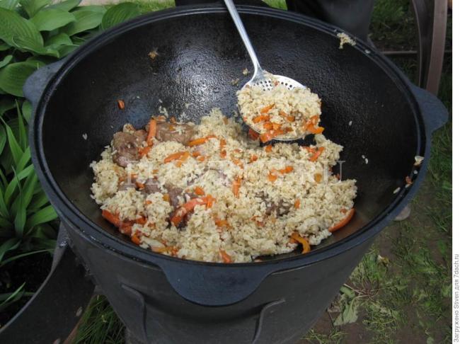 Если используется чугунный казан, то важно, чтобы он прошел предварительную подготовку. Обычно его воронят для образования противопригарного слоя, но если он повредился, то пища может пригорать, что недопустимо