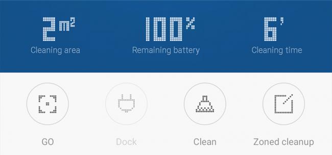 После успешного подключения на основном экране приложения будет отображаться карта квартиры/дома, составленная пылесосом. Там же вы сможете найти информацию о работе девайса (например, данные о пройденной дистанции). Управляется девайс следующими кнопками: