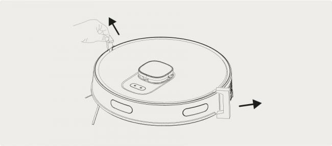 Поднимите верхнюю крышку робота-пылесоса Xiaomi и удерживайте отверстие «Сброс», чтобы сбросить его систему.