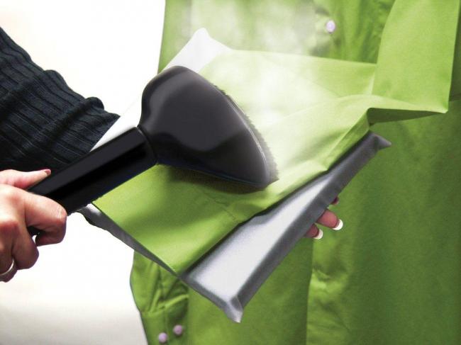 Отпаривателем удаляются складки посредством подачи горячего пара, а заодно и дезинфицирует вещь. Гладить можно в положении вертикально. Однако не все ткани подходят для этого метода.