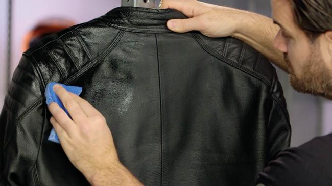 Наносить фиксирующий состав стоит губкой уже неокрашенную куртку ровными движениями и желательно в одно направлении. В процессе нанесения закрепителя могут образоваться белые разводы или же пена. В таком случае волноваться не стоит. Пугающие разводы исчезнут после того, как состав высохнет. Закрепитель позволяет защитить кожаную куртку от вытирания и выцветания.