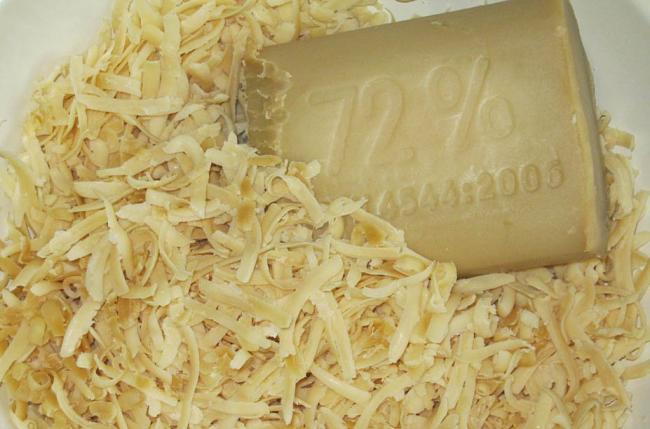 Натрите самое обычное мыло на крупной терке. Эта манипуляция позволит ему быстрее раствориться в воде.